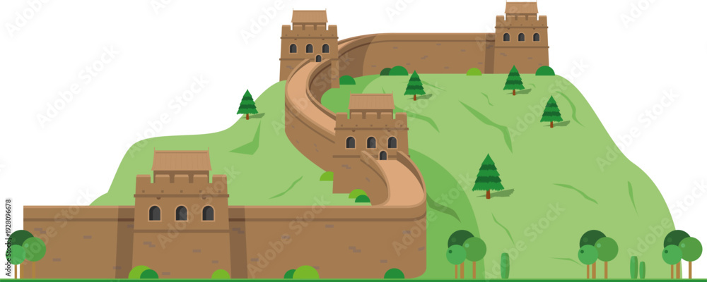 Great Wall of China isolated on white background vector illustration. Monuments and landmarks Series #1928096678