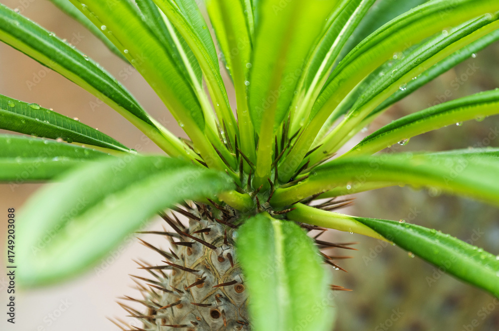 Gros plan sur le feuillage d'un pachypodium #1749203088