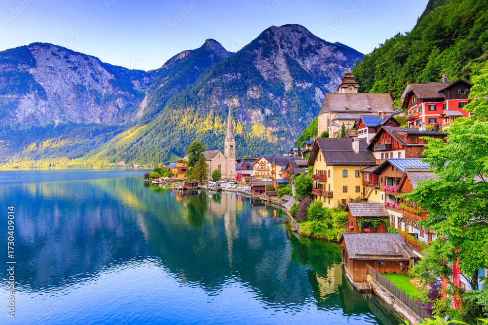 Hallstatt, Austria. Mountain village in the Austrian Alps. #1730409014