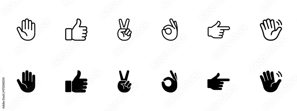Hand gesture icon set. Collection of hand signs and symbols. Vector illustration. #1712061250