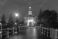 Historic Zijlpoort city gate with reflection at night in Leiden Netherlands #1732300347