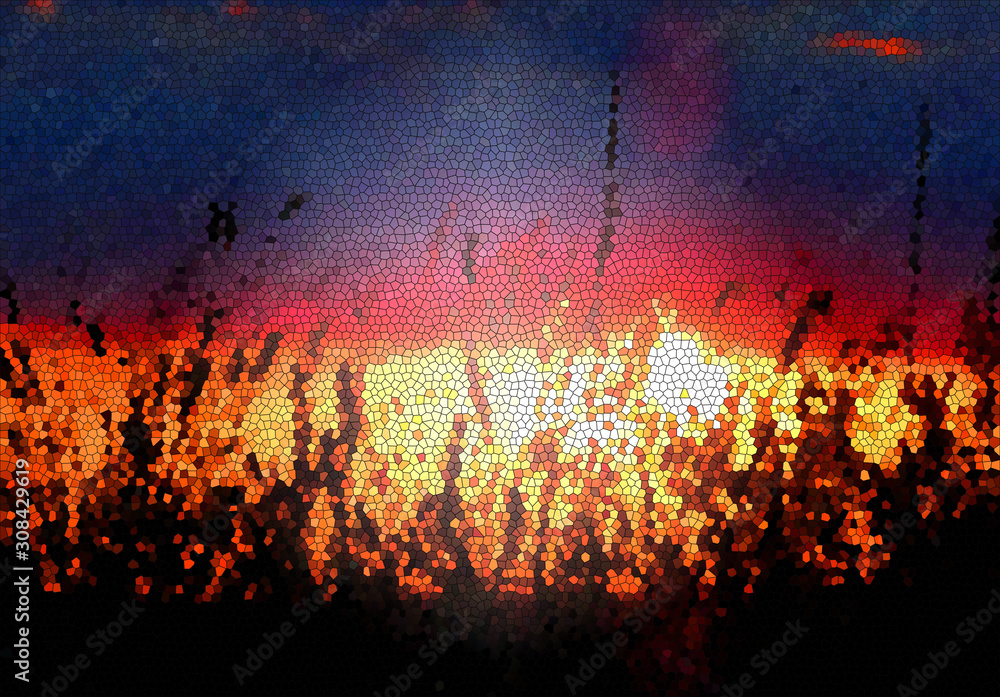 illustration based on own photo image. The mosaic technique.Abstract background, sunset over the field. #308429619