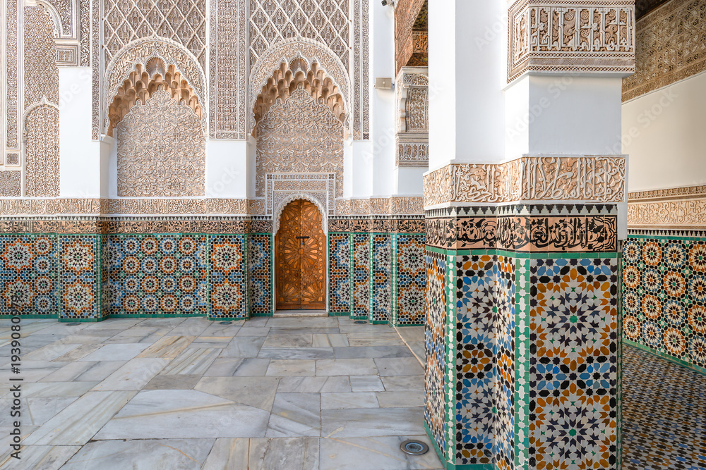 Intricate Moorish Architecture of Ben Youssef Madrasa in Marrakesh, Morocco #1939080979