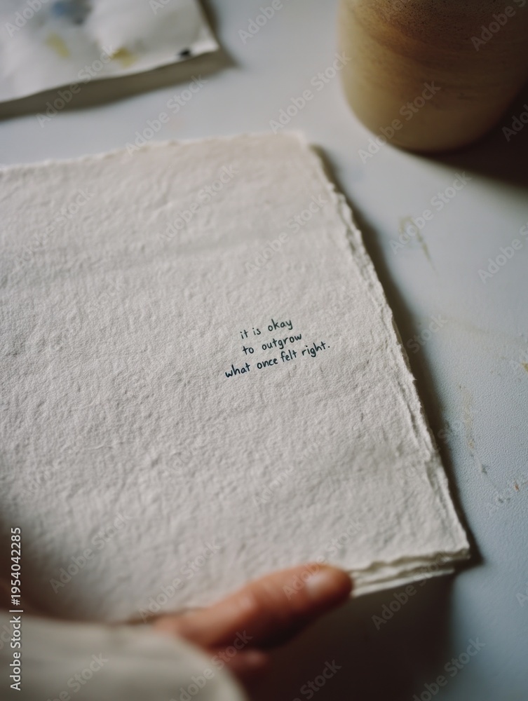 “It Is Okay to Outgrow What Once Felt Right” typography macro, personal growth, change and emotional acceptance concept #1954042285