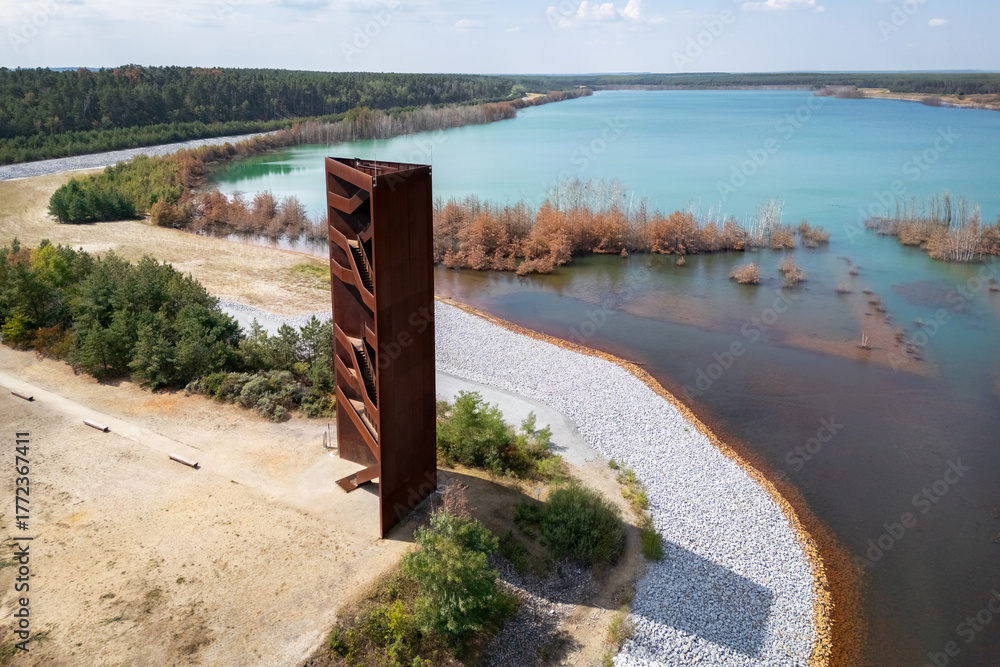 Landscape of the southern Brandenburg with the Rostiger Nagel (Rusty Nail, oficially named Landmarke Lausitzer Seenland) viewpoint as a dominant #1772367411