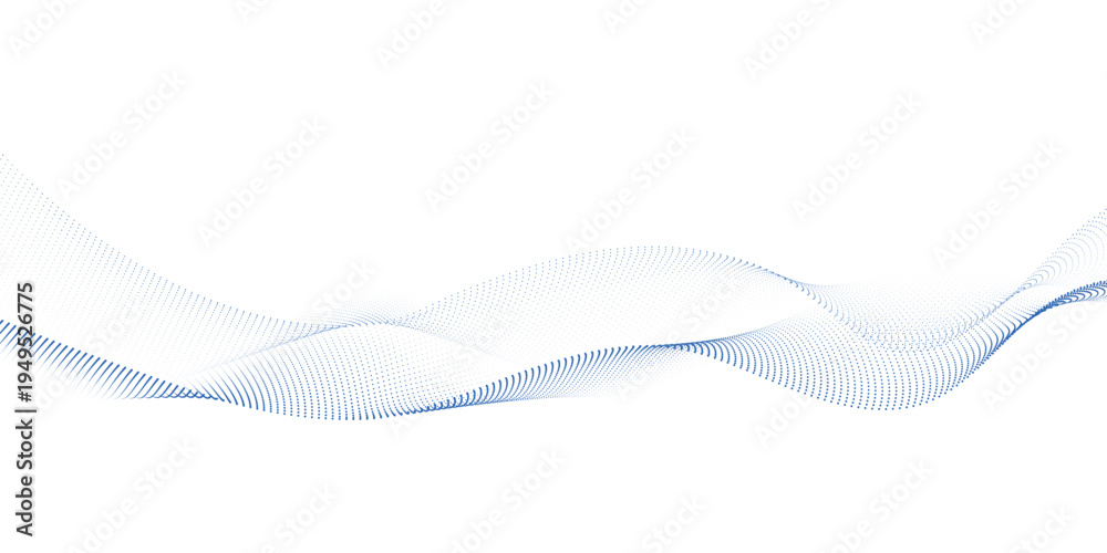 Light blue abstract dotted wave line background with flowing particles and halftone gradient mesh pattern, modern technology soundwave style design for banner, poster and presentation #1949526775