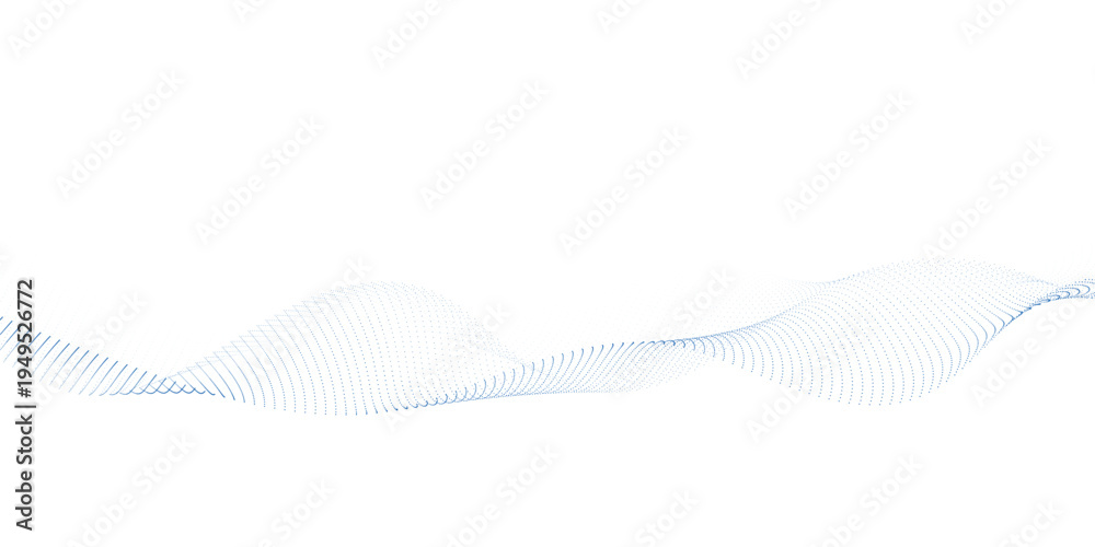 Light blue flowing dotted wave background with particle curves and halftone gradient mesh pattern, minimal modern technology soundwave design for banner and presentation #1949526772