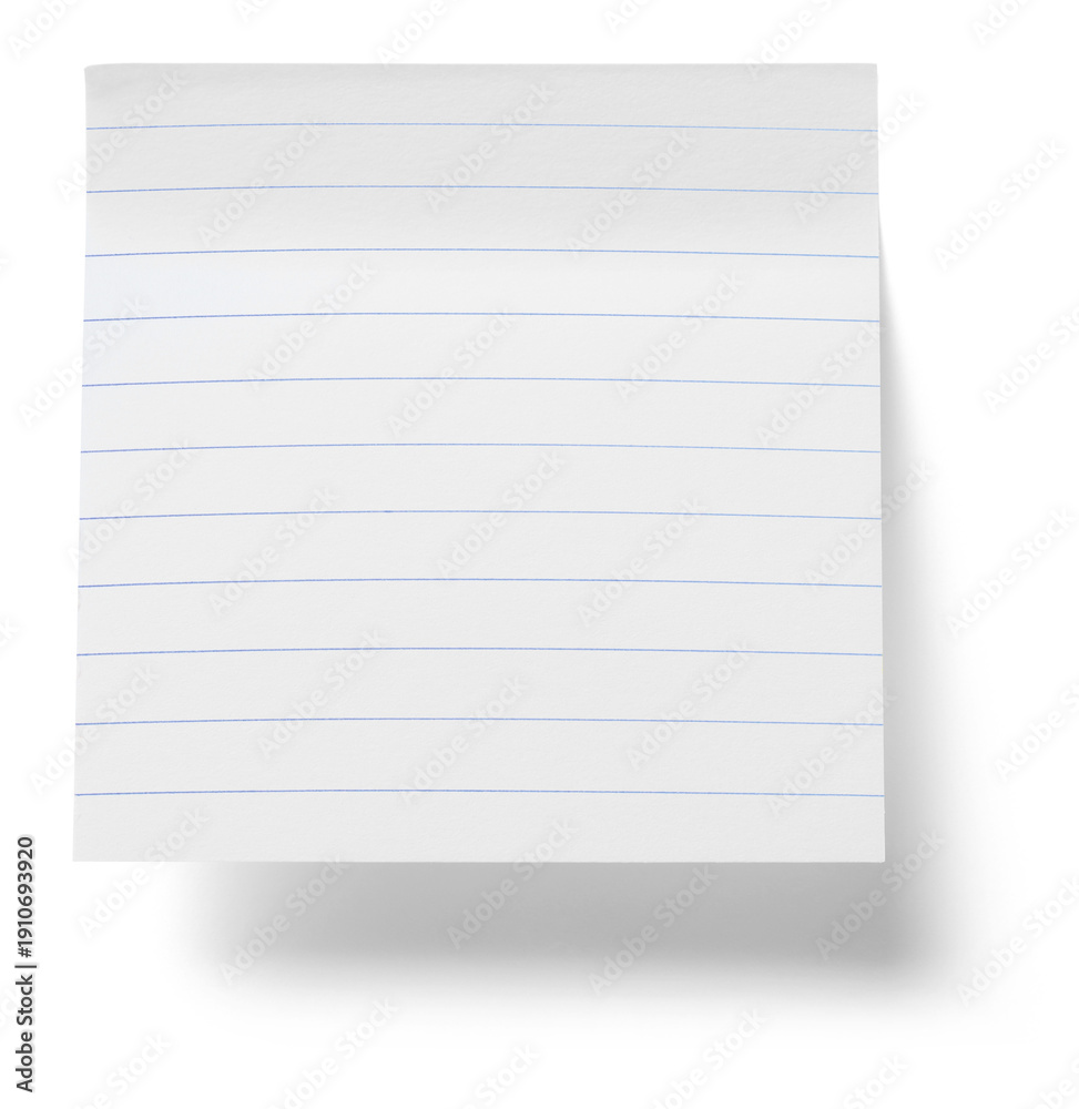 Lined light gray sticky note with blue rules and shadow, isolated on transparent background (PNG) #1910693920