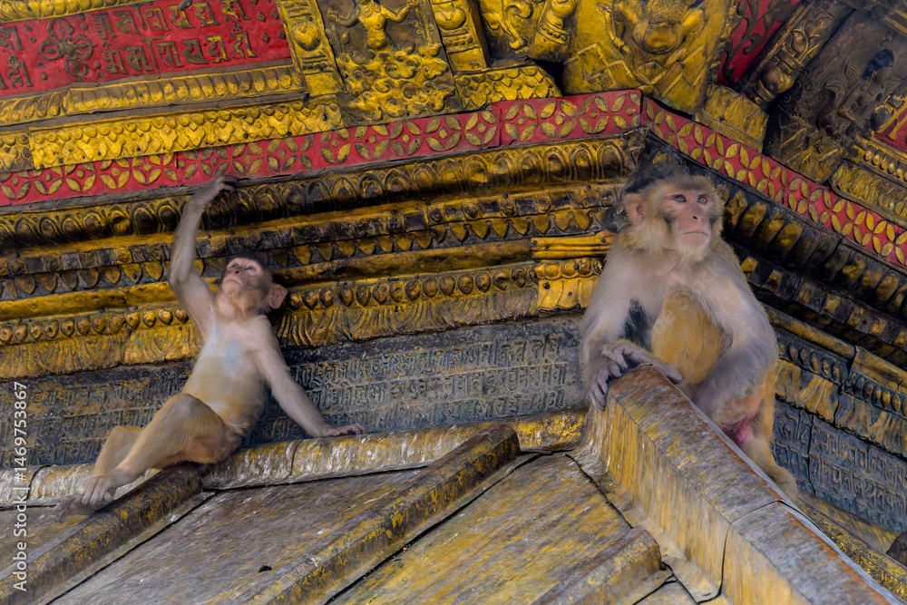Macacos en el templo de los monos de swayambhunath, en katmandú, nepal #1469753867