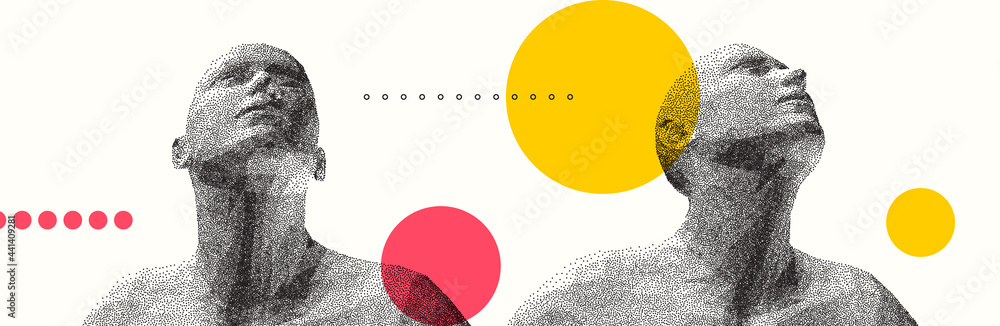 Man looking up. Abstract digital human head. Minimalistic design for business presentations, flyers or posters. 3d vector illustration. #441409281