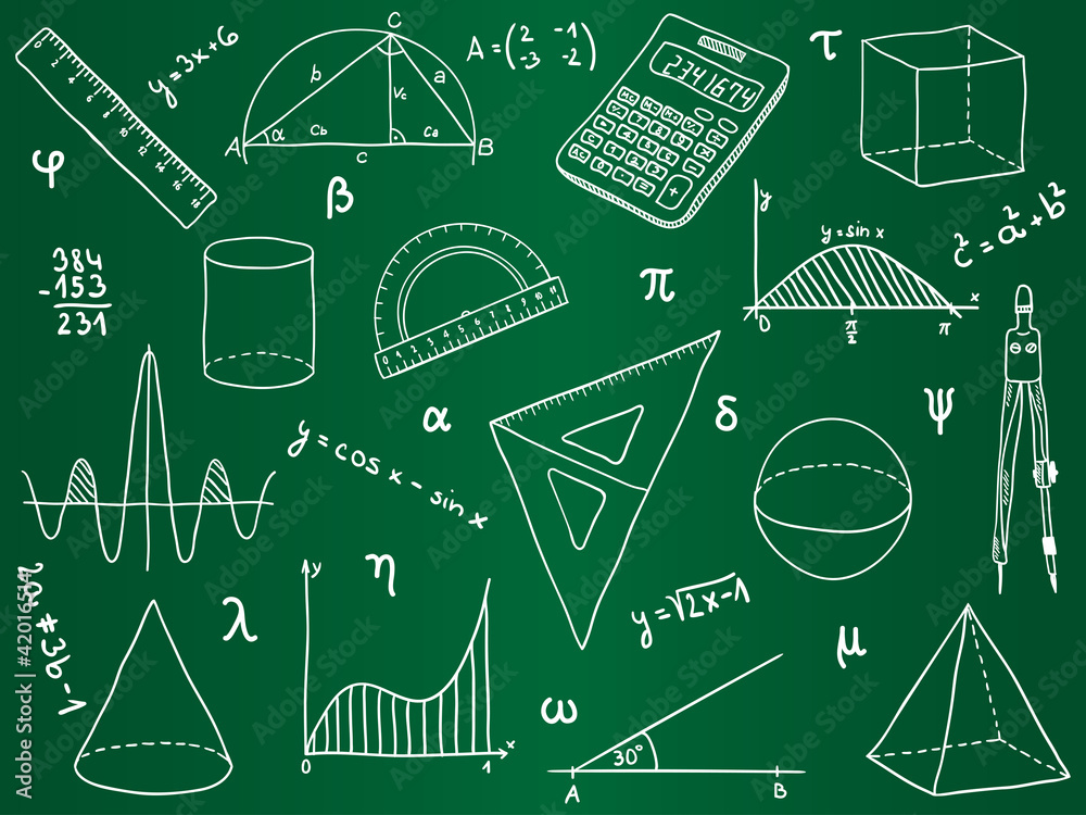 • #42016514 Mathematics - school supplies, geometric shapes and expressions