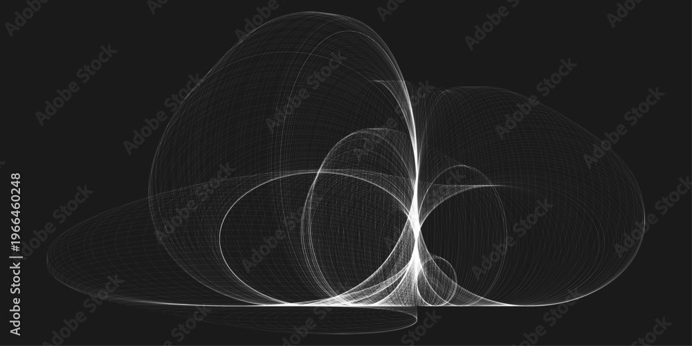 minimal abstract vector glowing light line wave on dark background with flowing geometric curves. #1966460248