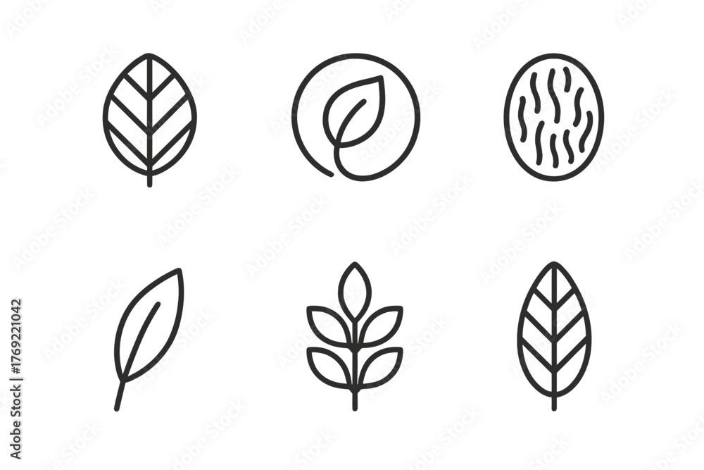 Minimalist leaf icons set: nature-inspired outline designs #1769221042