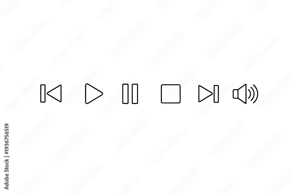 Minimalist media control icons: play, pause, stop, volume #1936756519