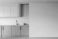 Modern kitchen interior with blank wall space and minimalist cabinetry for design or poster mockup template in neutral colors and clean architecture style. 3D Rendering #1751749061