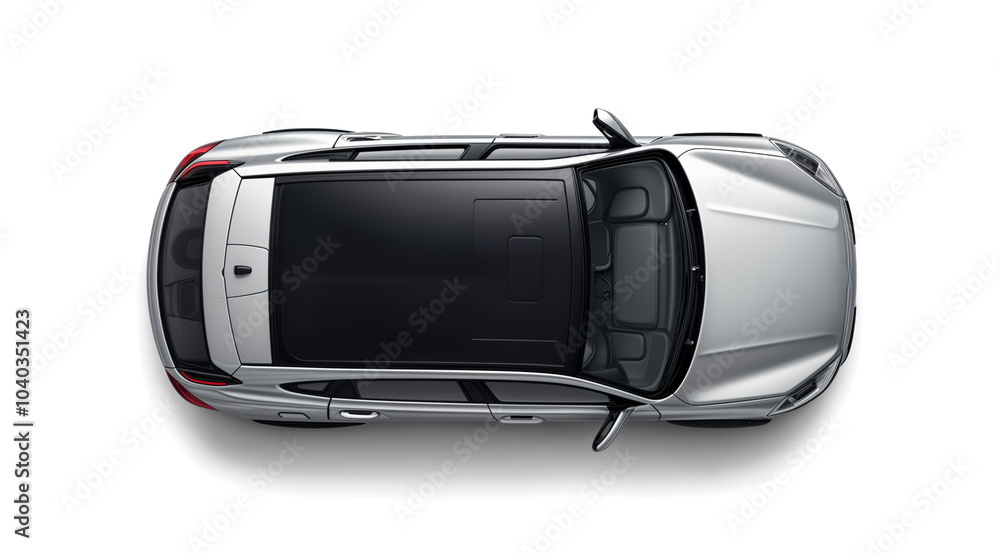 Modern Silver SUV Car, Top View. Isolated on Transparent Background. PNG. sleek silver car viewed from above #1040351423