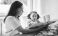 Mom, girl child and book for reading, spelling and learning for literature, language or studying in family home. Storytelling, mother and daughter with teaching, education and focus for development #622288534