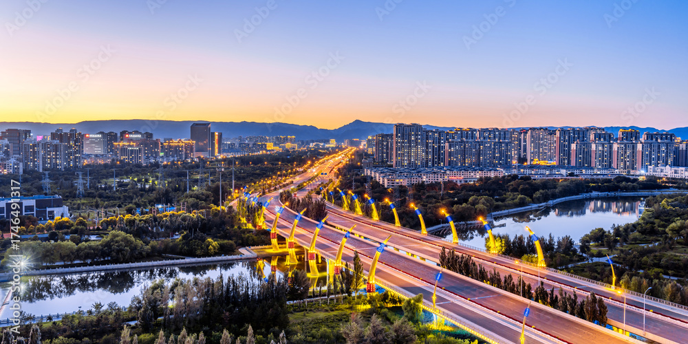 Night view of Niujiao Bridge, Hohhot, Inner Mongolia, China #1746491317