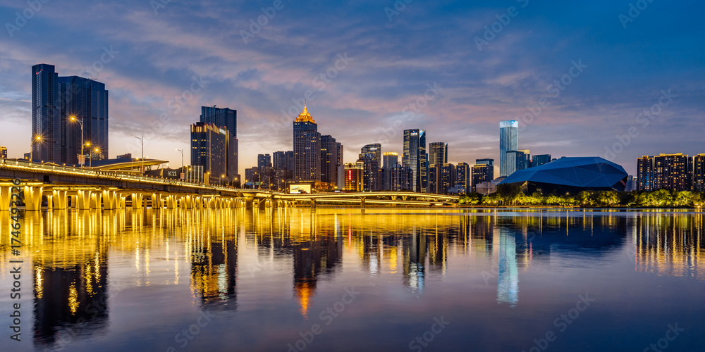 Night view of the skyline and Shengjing Theater in Hunnan District, Shenyang, Liaoning Province, China #1746493226
