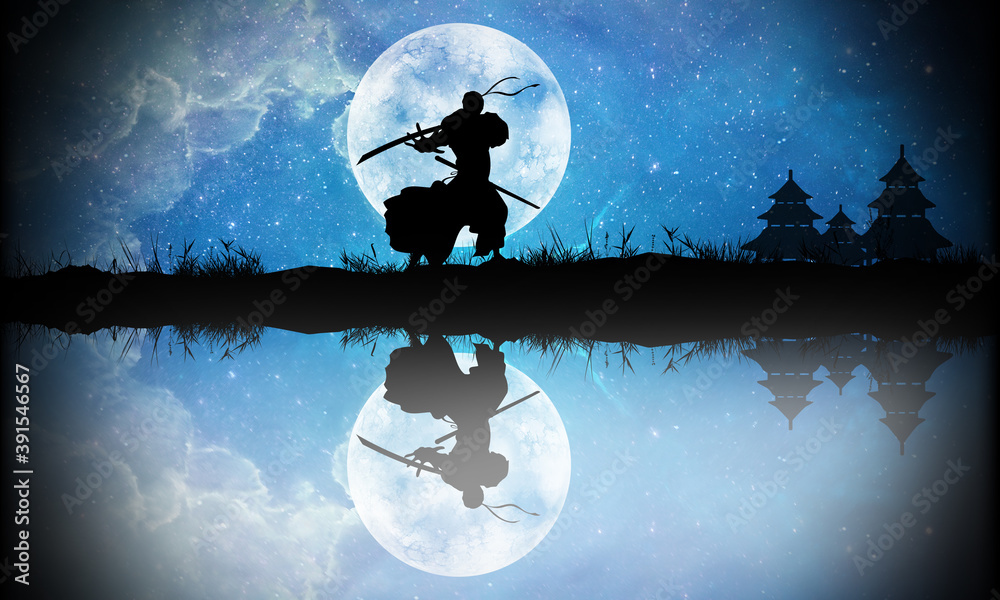 Ninja Warrior cartoon character in the real world silhouette art photo manipulation #391546567