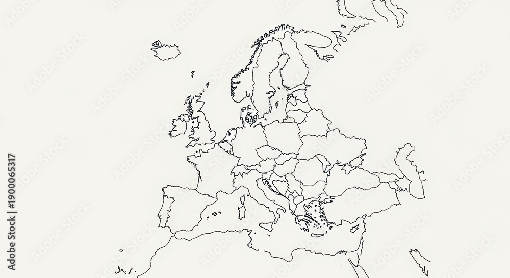 Outline map of Europe showing political country borders on a clean white background #1900065317