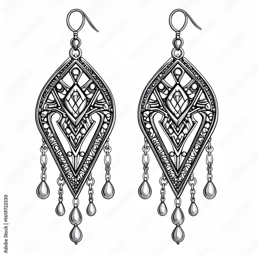Pair of Ornate Dangle Earrings with Intricate Metalwork and Decorative Gemstone Accents #1619722530