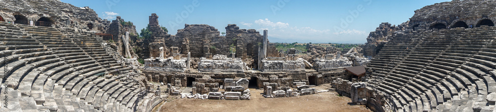Panoramic photo of Antique stone theatre in the city of Side, Turkey #1800122099