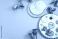 Passover seder plate with matzah and kippah for jewish holiday #1951400433