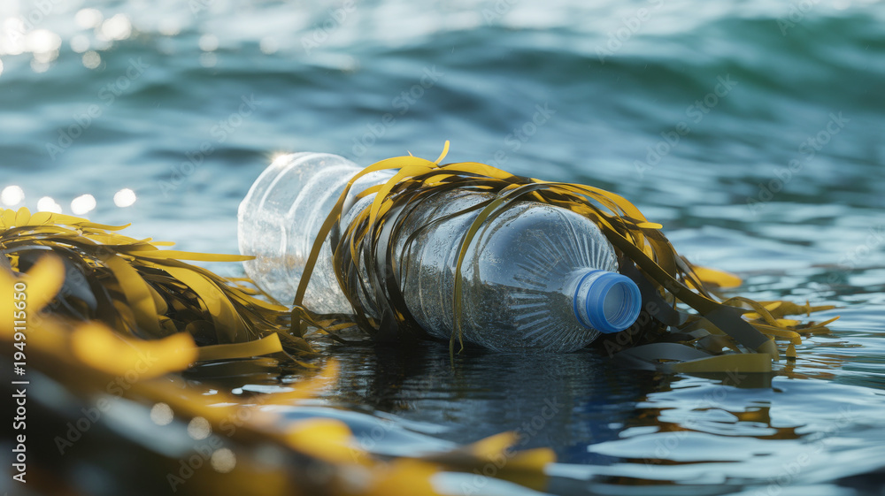 Plastic bottle floating in ocean water. Environment and pollution concept. #1949115650