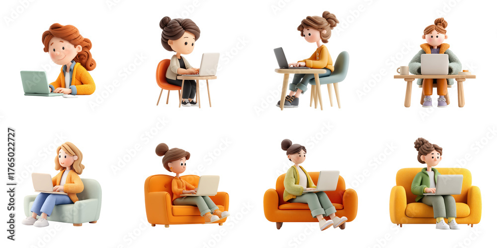 Plasticine 3d woman png isolated working collection in many action for work and focus purpose. #1765022727