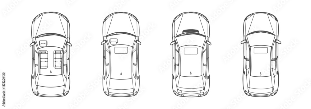Professional Architectural Top View Cars CAD Drawings - Sedan SUV and Hatchback Plan Symbols for Site Layouts #1875200430