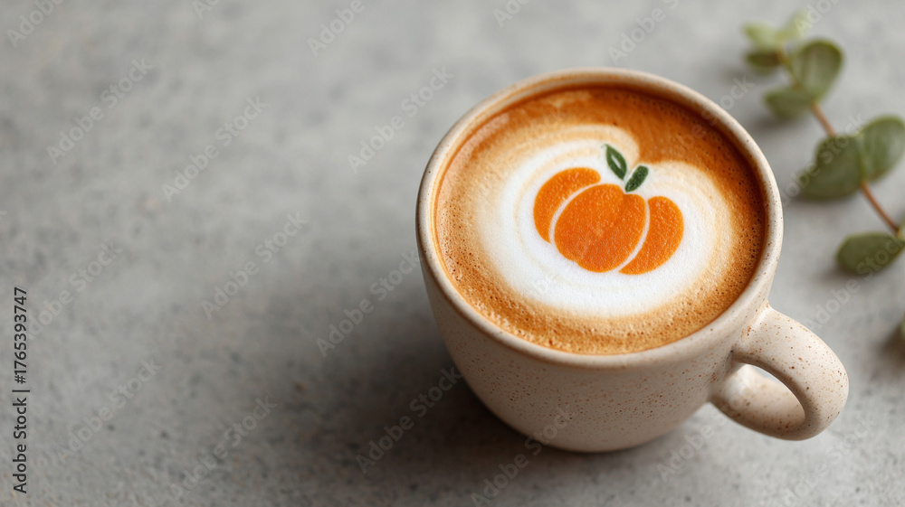 Pumpkin latte art in a cup of coffee. Halloween coffee. #1765393747