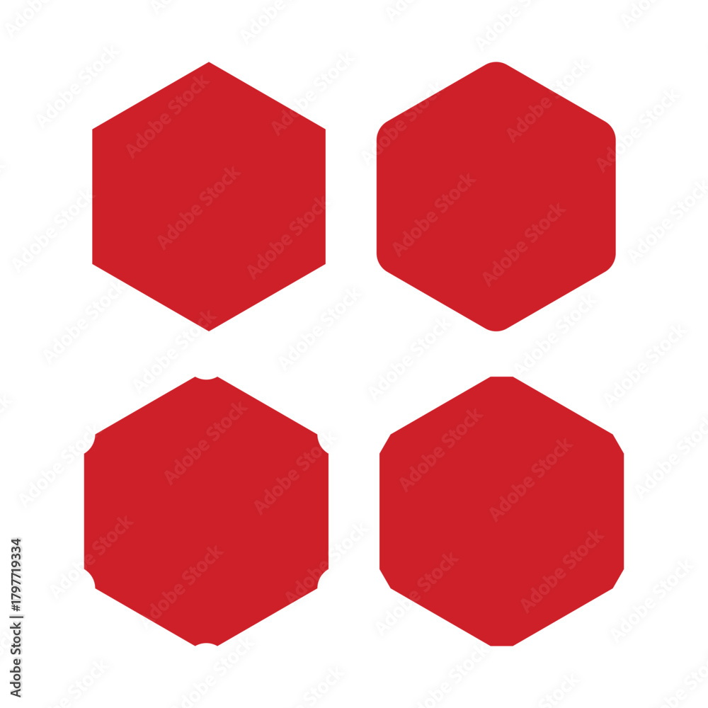 Red Hexagon Shape Corner Cut Icons #1797719334
