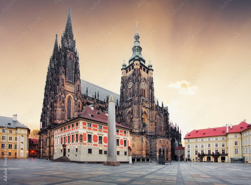 Saint Vitus Cathedral in Prague, Czech Republic. Empty square in Praque Castle #1958135657
