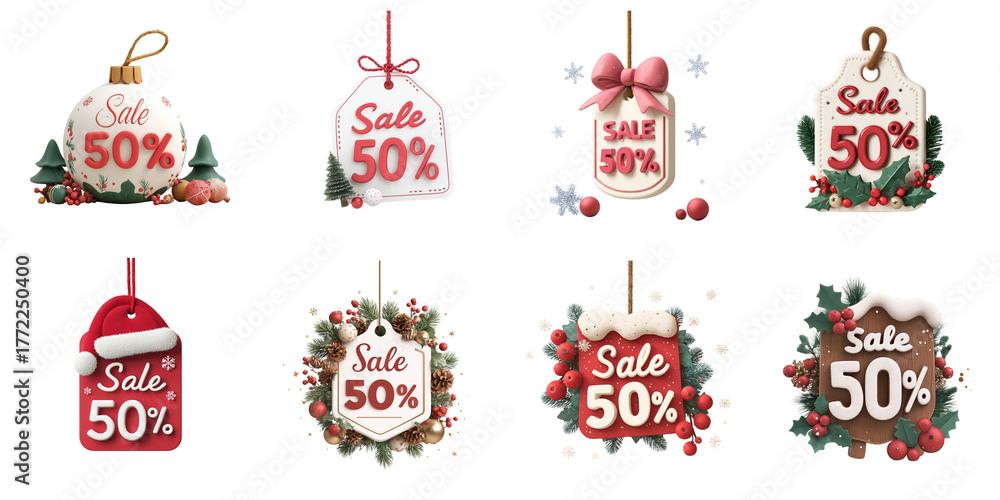Sale 50% tag badge png collection in 3d transparent for Christmas product discount presentation. #1772250400