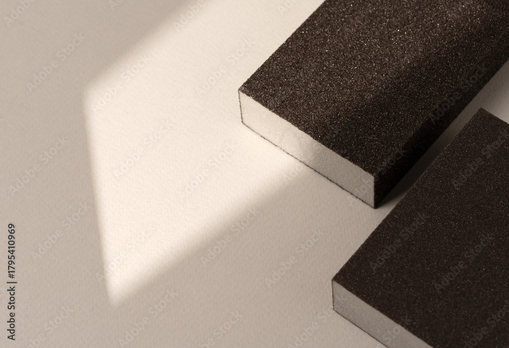 Sanding sponge blocks. Clean studio composition suitable for hardware, DIY, crafting, woodworking and home improvement visuals. #1795410969