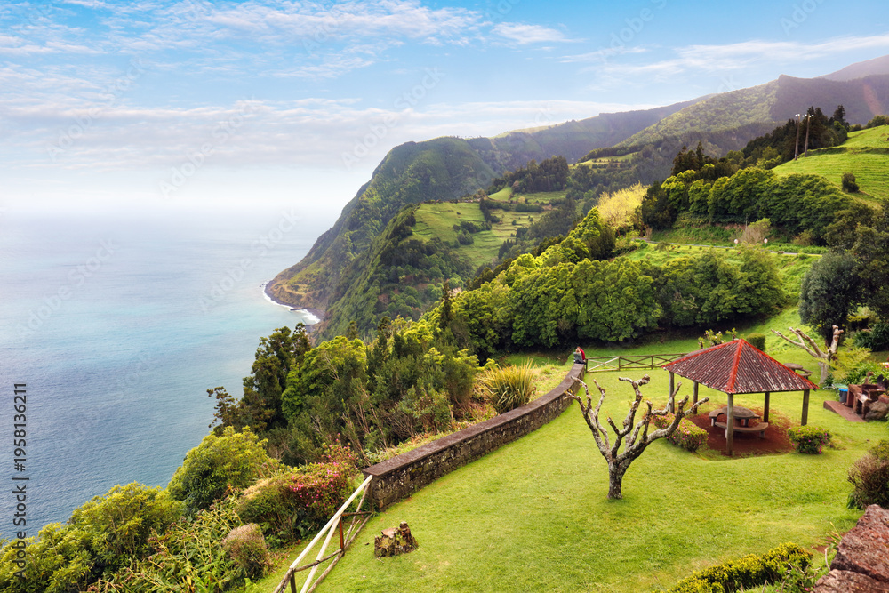 Sao Miguel, Azores, Portugal - Garden of the Miradouro of Ponta do Sossego on the island of Sao Miguel in the Azores archipelago #1958136211