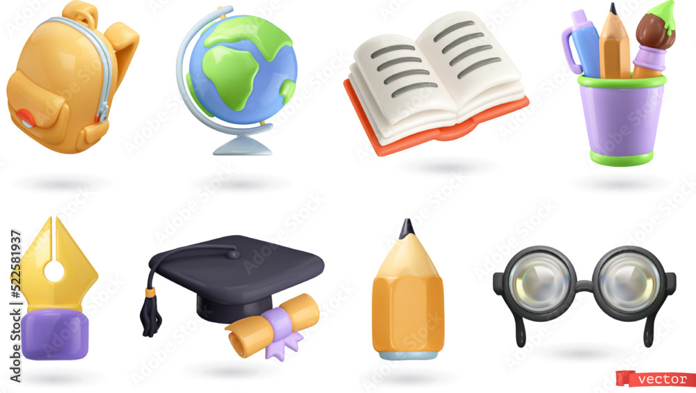 School and education icons 3d render vector set #522581937