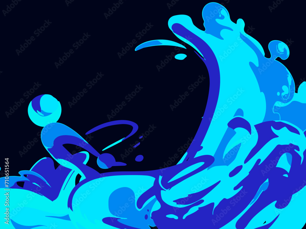 Seascape in anime and cartoon style. Vector illustration of sea waves. #710651564