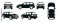 Set of black station wagon car icons showing different views including front, side, back, top, and perspective for transportation design elements in a minimalist graphic style #1927897434