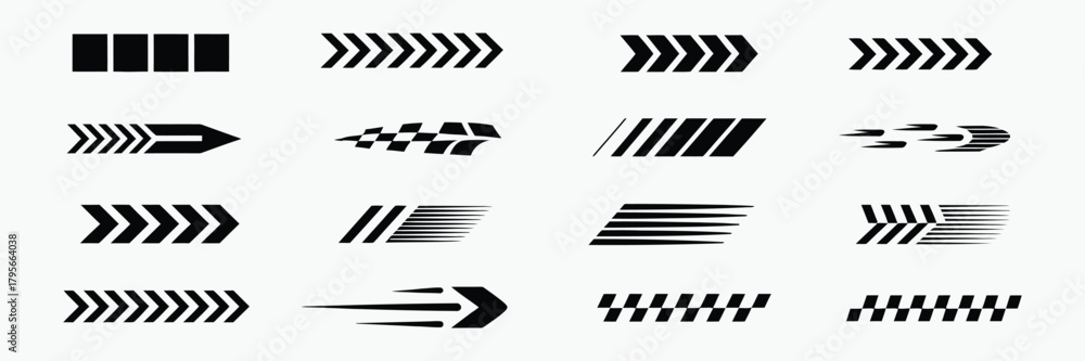 Set of racing chevron arrows and speed lines graphic elements #1795664038