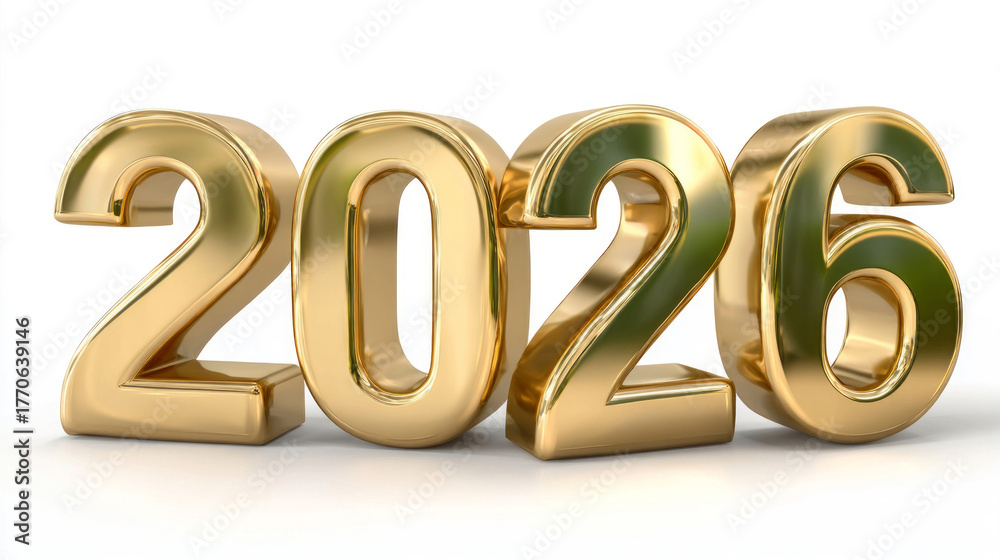 2026 Shiny gold 3d numbers on white background. New year celebration and modern festive design. #1770639146