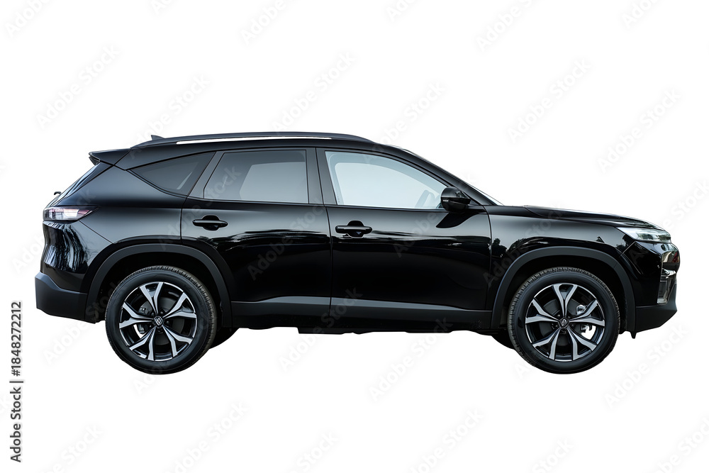 side view of black suv car is isolated on white background with clipping path #1848272212