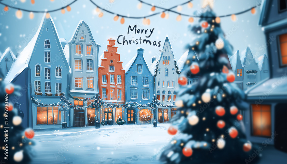 Silent Night Holy Night - christmas city or town. Colorful christmas house panorama. #1767728065