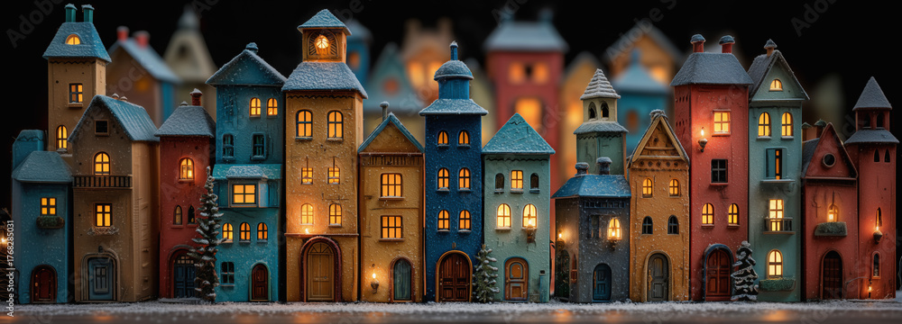 Silent Night Holy Night - christmas city or town. Colorful christmas house panorama. #1768285031