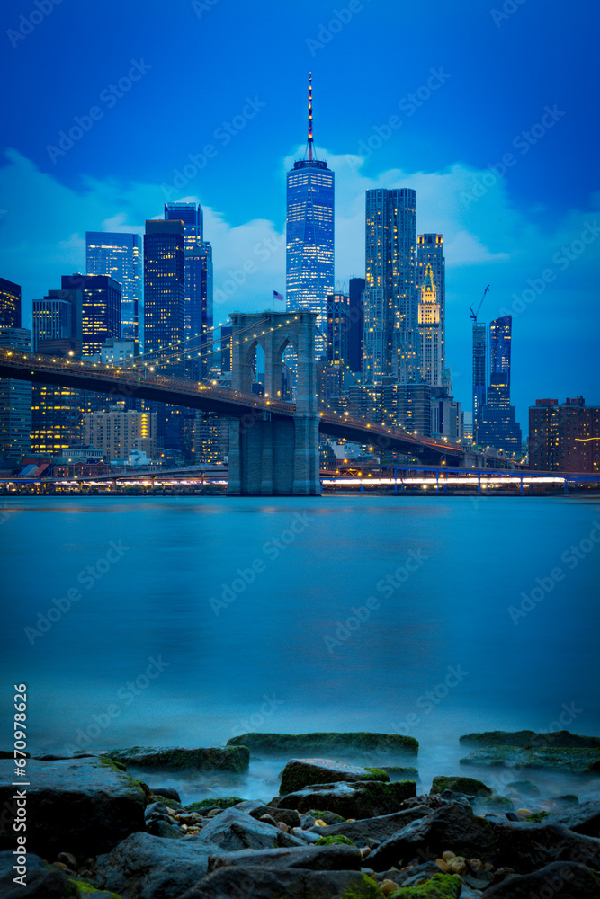 Skyline de Nueva York desde el Dumbo hasta el puerto de columnas #670978626