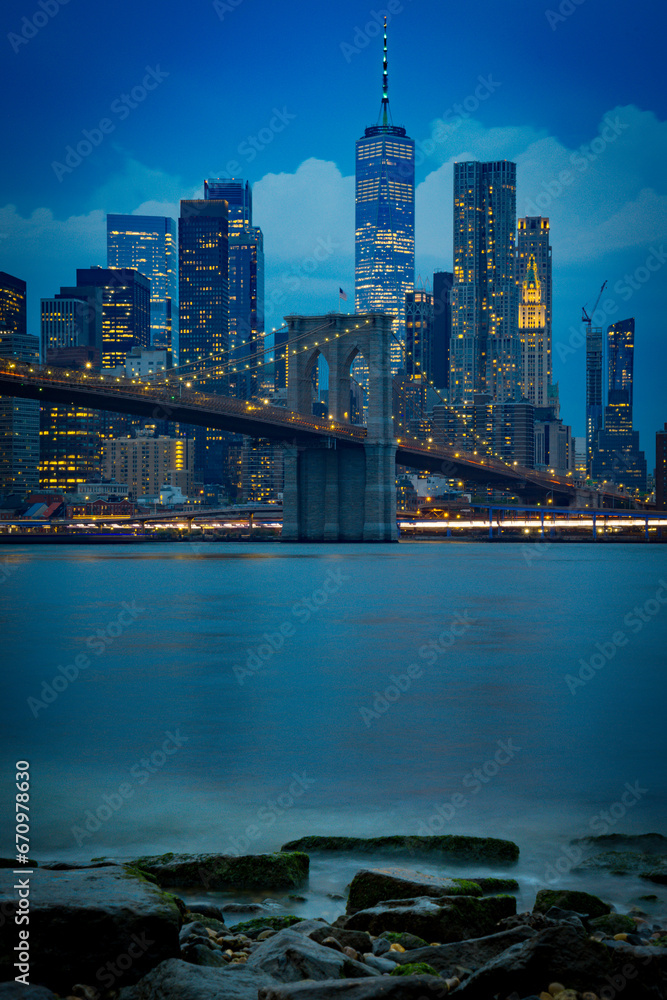 Skyline de Nueva York desde el Dumbo hasta el puerto de columnas #670978630