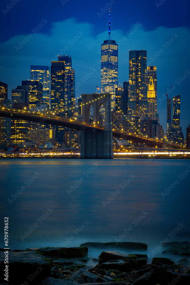 Skyline de Nueva York desde el Dumbo hasta el puerto de columnas #670978652