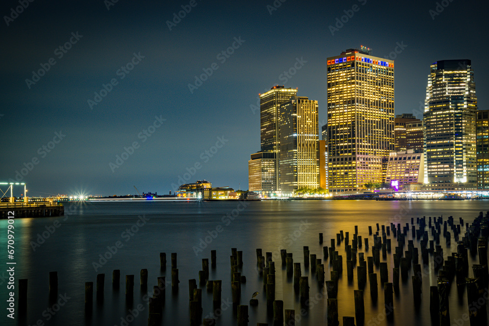Skyline de Nueva York desde el Dumbo hasta el puerto de columnas #670979012