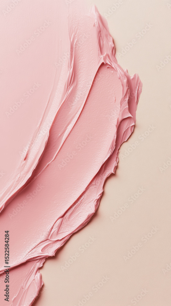 Smooth pink cosmetic cream or makeup foundation smeared on a soft beige background. Generative AI #1522584284